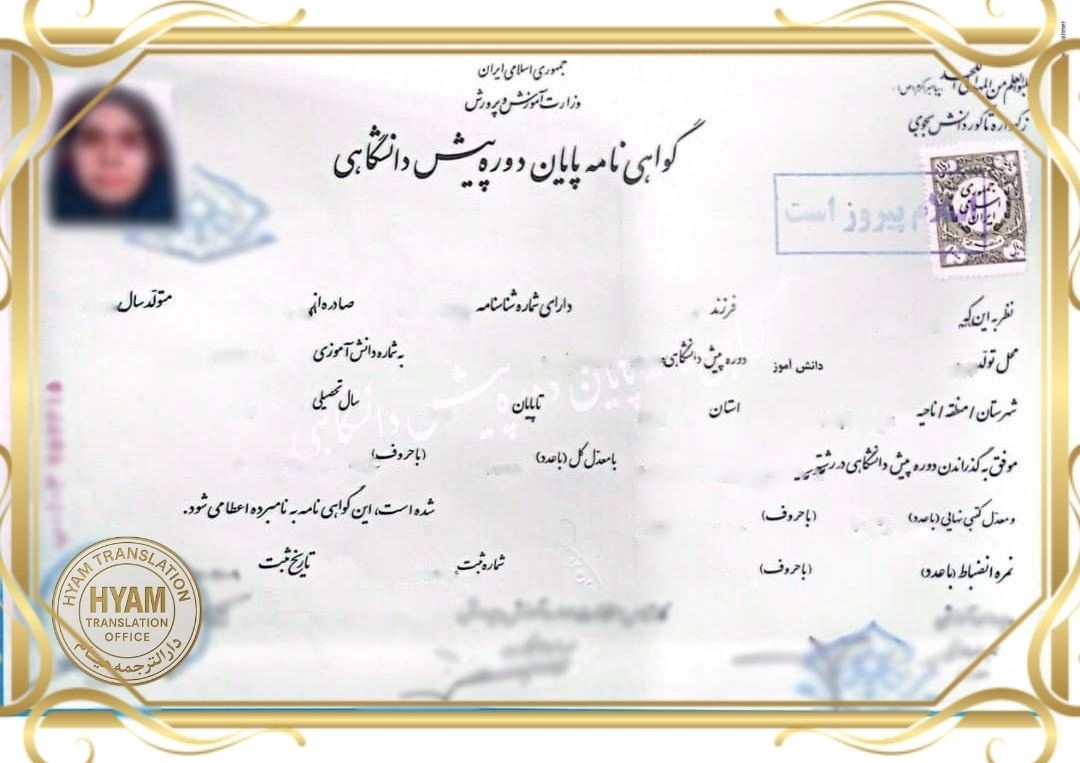 ترجمه مدرک پیش دانشگاهی در سریع ترین زمان ممکن